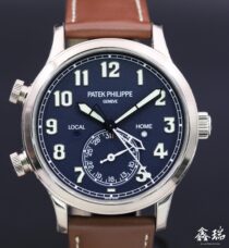 Patek Philippe PP 百達翡麗 Calatrava Pilot Travel Time 飛行錶 5524G 18K白金 藍面 兩地時間 42mm 自動上鍊 盒單全