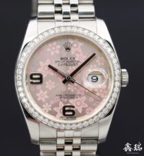 ROLEX 勞力士 DateJust 116244 原廠鑽石外圈 粉紅色小花面盤 不鏽鋼 五珠鍊帶 36mm 自動上鍊 盒單全 ( 2011 )