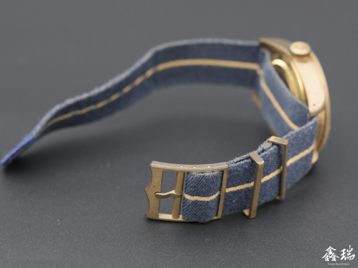 材質: 青銅錶殼 / 原廠藍色織紋錶帶
