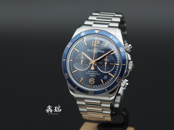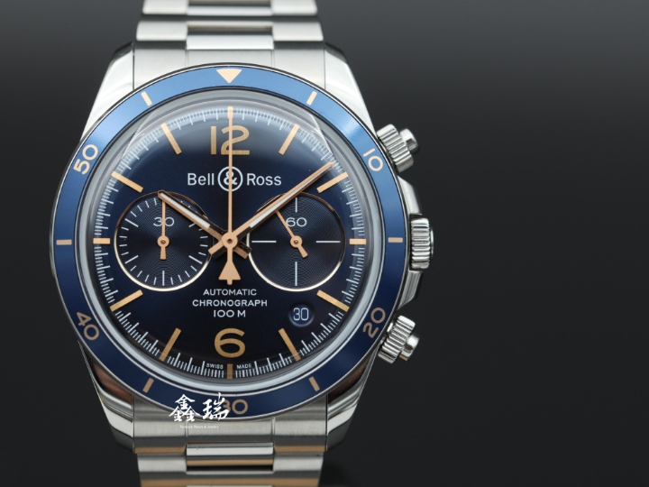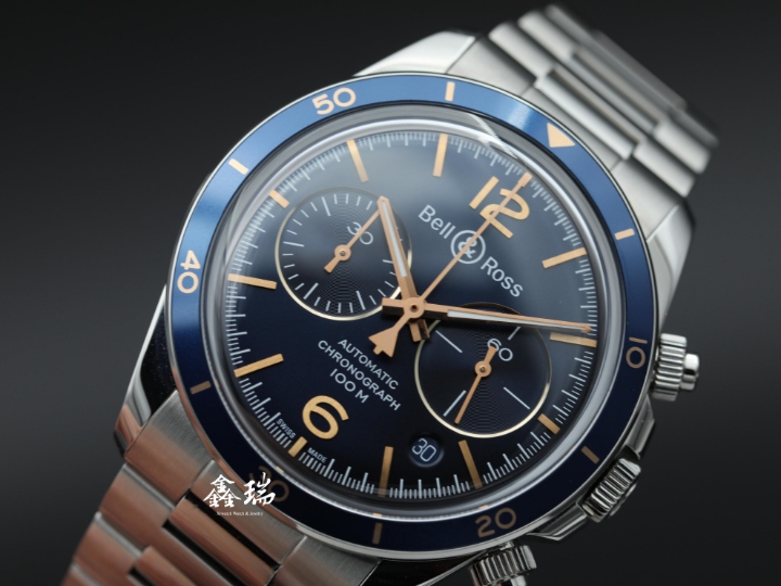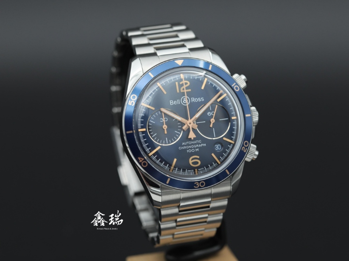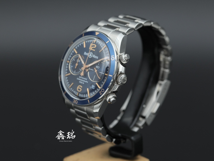 98新 Bell & Ross 柏萊士 BR V2-94 BRV294-BU-G-ST/SST 藍色面盤 不鏽鋼 自動上鍊 41mm 計時碼表 盒單全 ( 2024 )