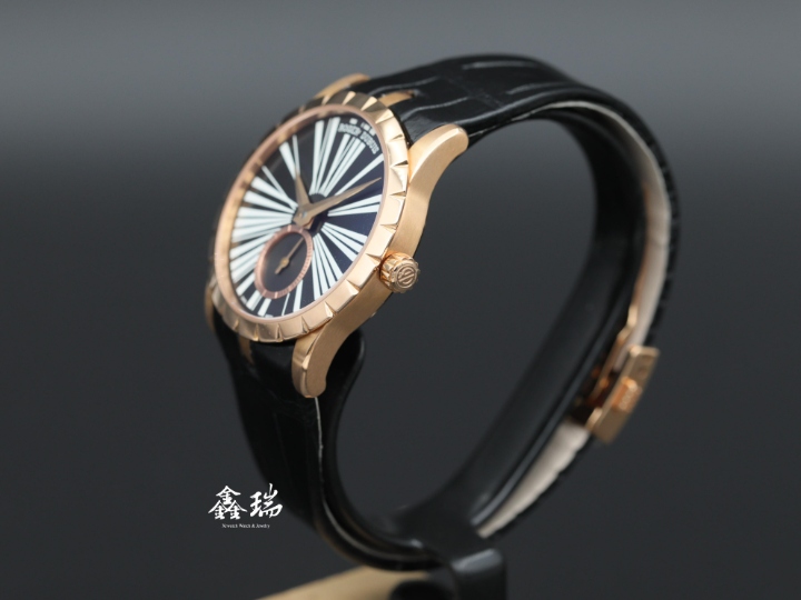 98成新 Roger Dubuis 羅杰杜彼 Excalibur RDDBEX0274 18K玫瑰金 黑色面盤 36mm 透背 自動上鍊 盒單全 ( 2025 )