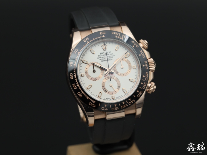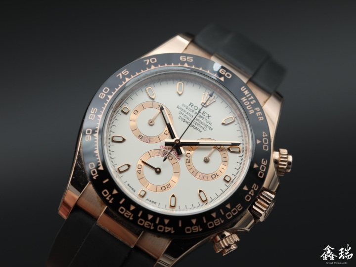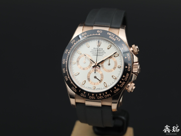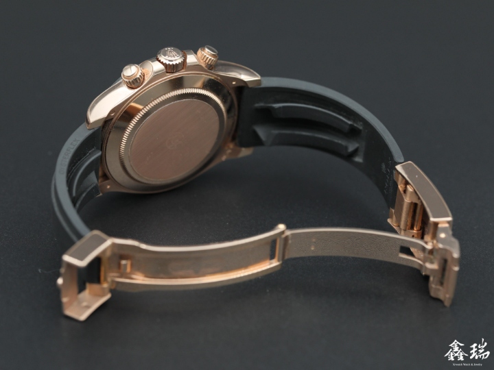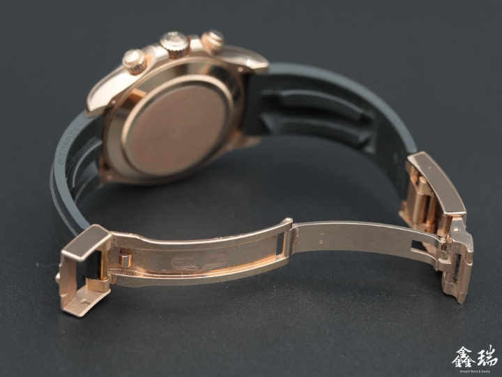 材質: 永恆玫瑰金錶殼 / 黑色陶瓷外圈 / 原廠橡膠帶 / 原廠永恆玫瑰金運動型錶扣