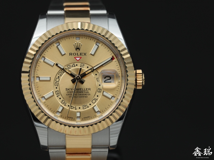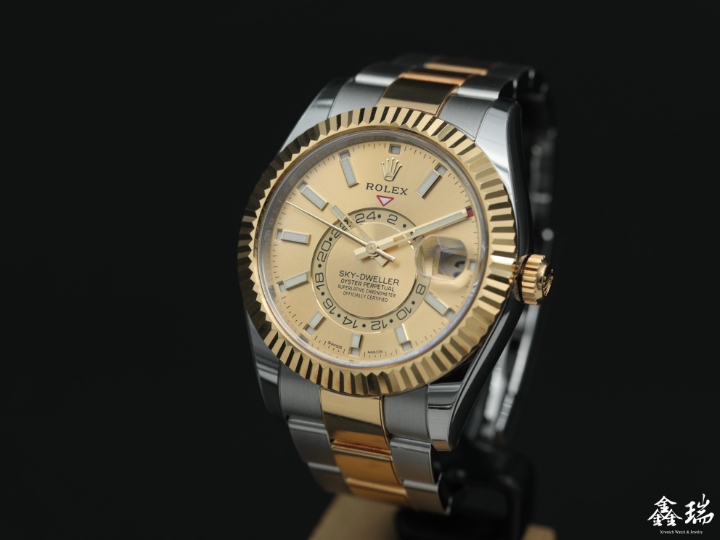 ROLEX 勞力士 Sky-Dweller 天行者 326933 金色面盤 不鏽鋼 18K黃金 42mm 年曆 兩地時間 自動上鍊 盒單全 ( 2022 )