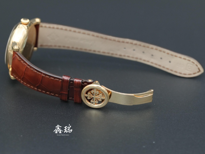 材質: 18K黃金錶殼 / 原廠皮帶 / 原廠18K黃金摺疊扣