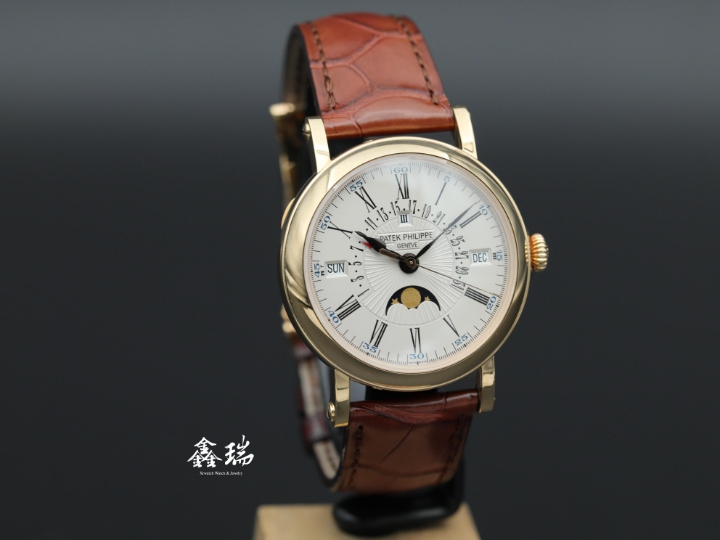 Patek Philippe PP 百達翡麗 Grand Complications 超級複雜功能系列 5159J 18K黃金 白色面盤 萬年曆 38mm 軍官錶殼 可掀式底蓋 自動上鍊 未使用品