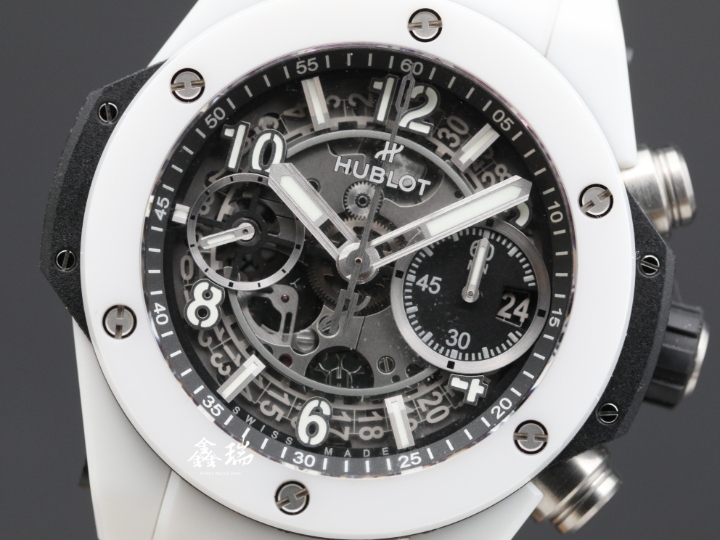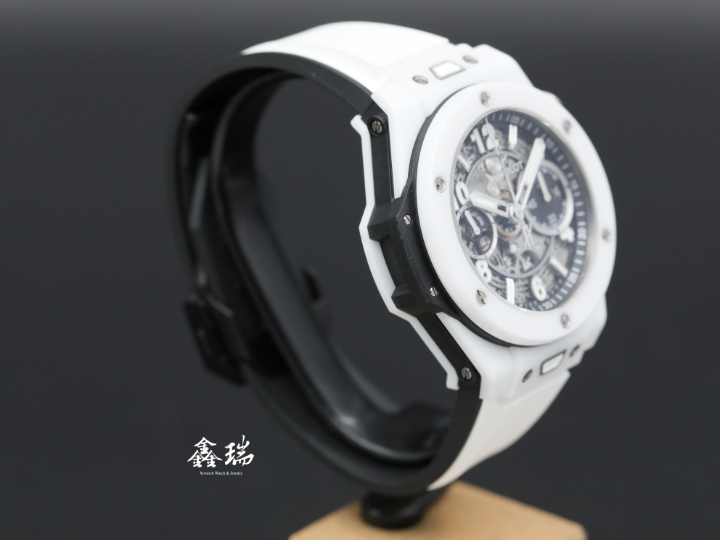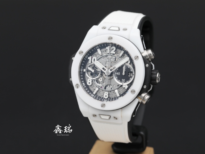 98新 Hublot 宇舶 Big Bang Unico 411.HX.1171.RX 白色陶瓷錶殼 鏤空面盤 42mm 飛返計時 自動上鍊 盒單全 ( 2023 國內單 )