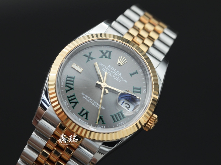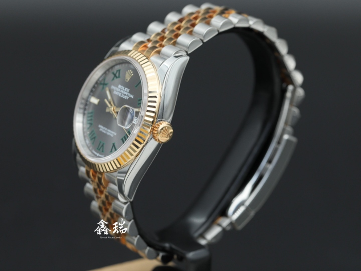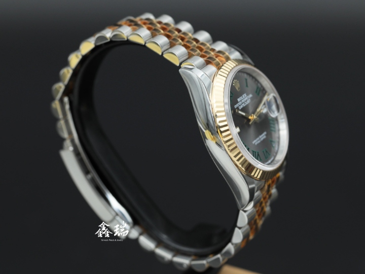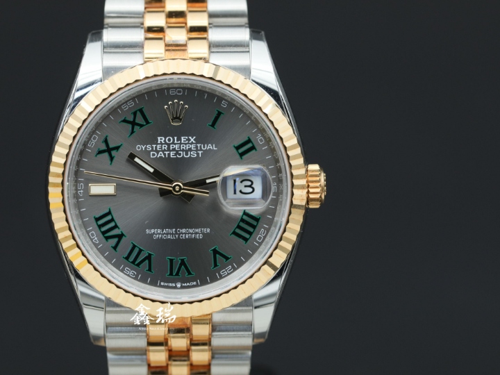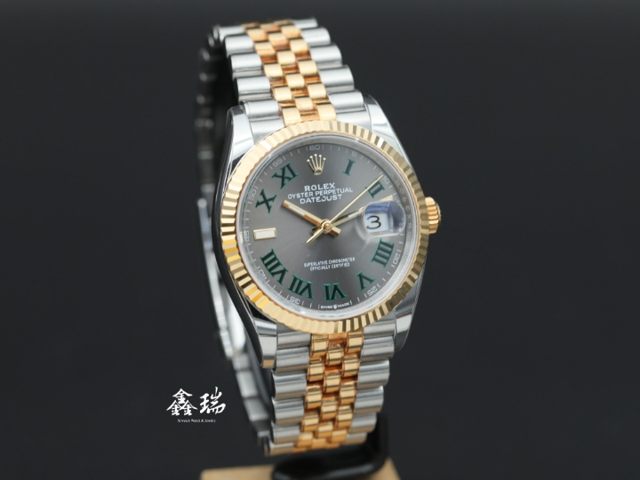 98新 ROLEX 勞力士 DateJust 36 126233 灰面綠羅馬 不鏽鋼 18K黃金 五珠帶 36mm 自動上鍊 盒單全 ( 2022/7 )