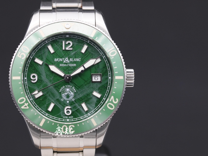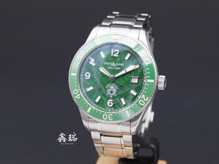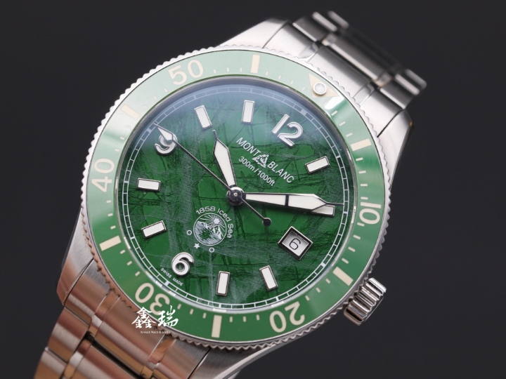 Montblanc 萬寶龍 1858 Iced Sea 129373 不鏽鋼 陶瓷圈 綠色冰川紋面盤 自動上鍊 41mm 300米潛水錶 保單 ( 2022 )