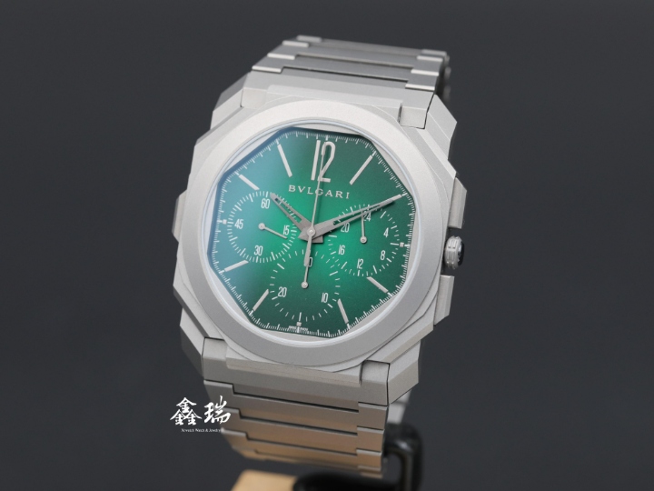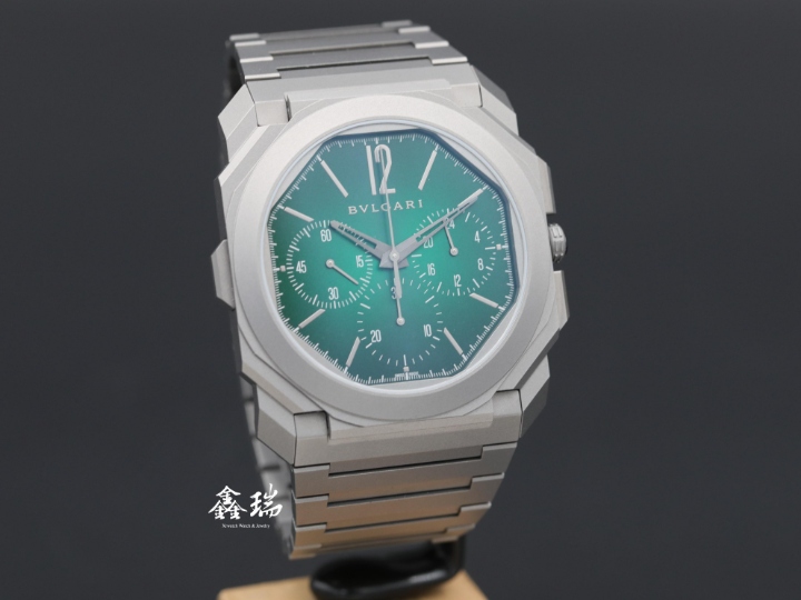 Bvgari 寶格麗 Octo Finissimo 103890 Yoshida限定 限量88只 綠面 超薄錶 鈦金屬 計時碼表 兩地時間 自動上鍊 42mm 盒單全 ( 2024 )