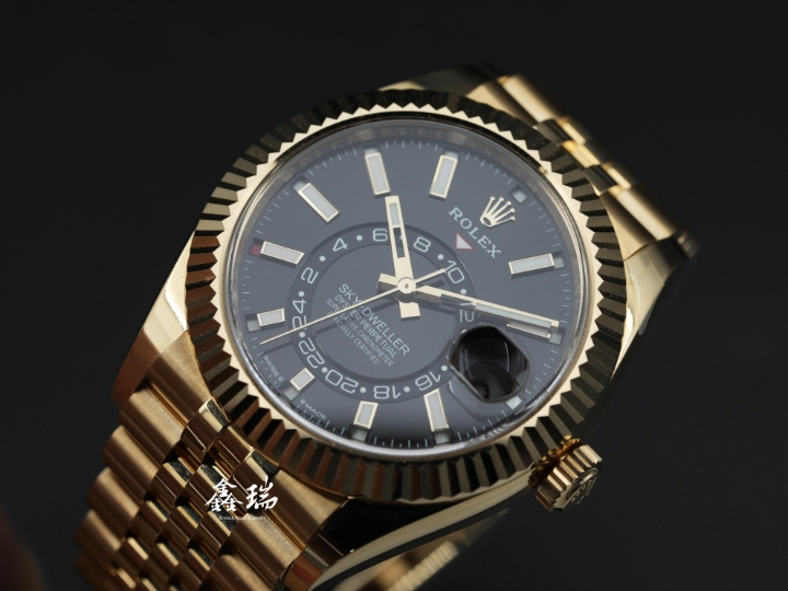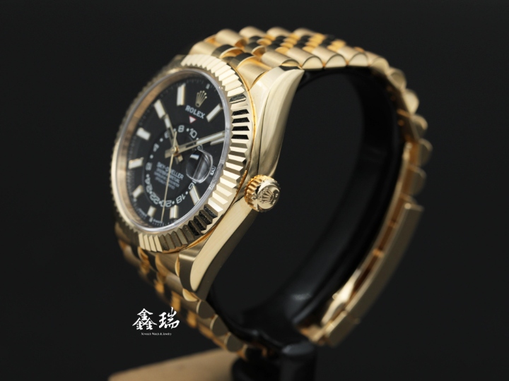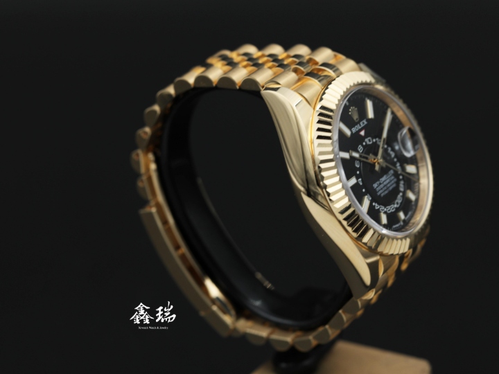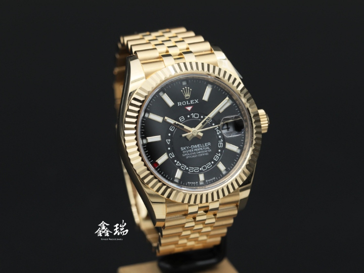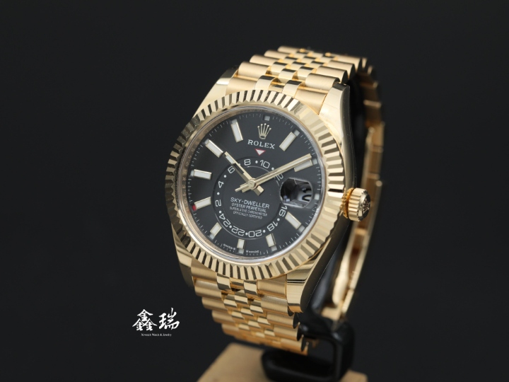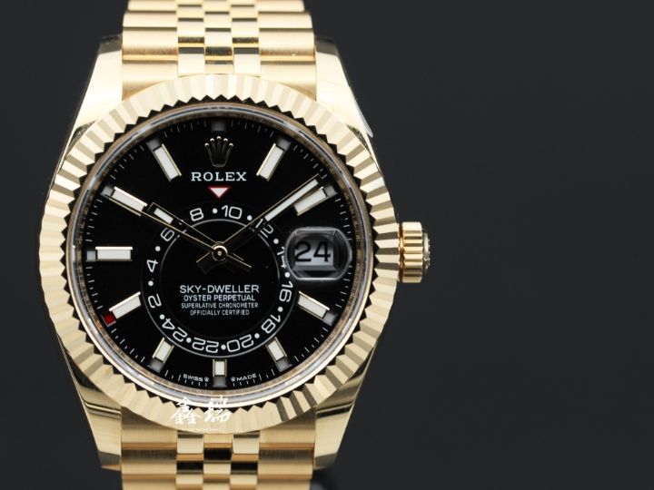 ROLEX 勞力士 Sky-Dweller 天行者 336938 黑色面盤 18K黃金 五珠鍊帶 42mm 年曆 兩地時間 自動上鍊 盒單全 ( 2024/12 )