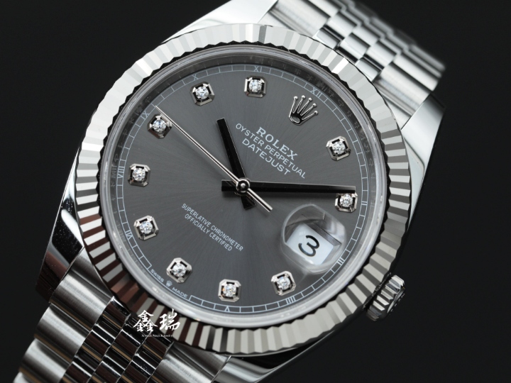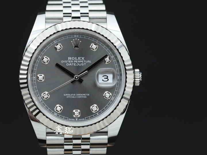 ROLEX 勞力士 DateJust 41 126334 灰色鑽石面盤 不鏽鋼 18K白金外圈 五珠鍊帶 41mm 3235機芯 自動上鍊 未使用品