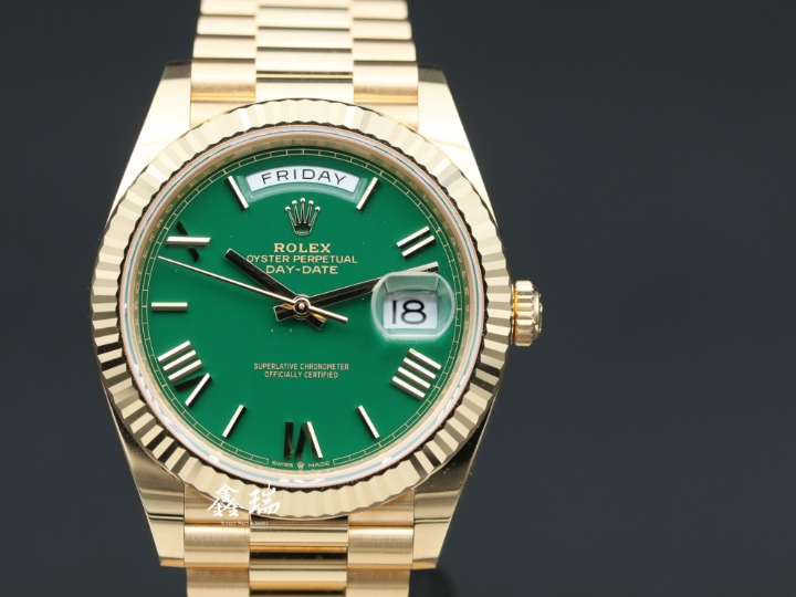 98新 ROLEX 勞力士 Day-Date 40 228238 綠色面盤 賭桌綠 18K黃金 總統帶 40mm 3255機芯 自動上鍊 盒單全 ( 2025 )